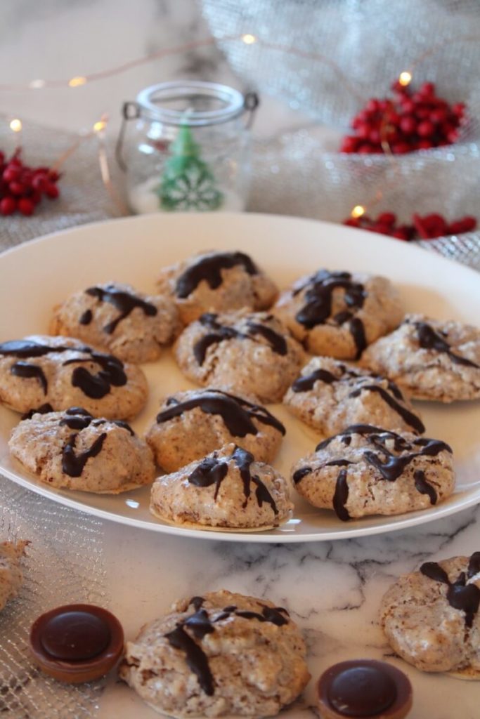 Auf unserem Plätzchenteller dürfen Haselnuss-Makronen nicht fehlen. Vor kurzem hatte meine Tochter Haselnuss-Makronen zusammen mit Toffifee gegessen und meinte das schmeckt ja mega. Da kam mir die Idee beides zusammen zu vereinen.